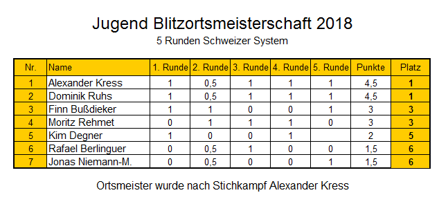 Jugend - Blitzschach - Ortsmeisterschaft 2025