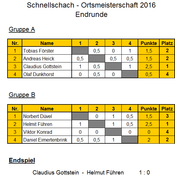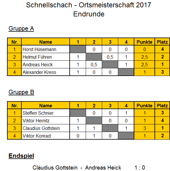 Schnellschach-Ortsmeisterschaft